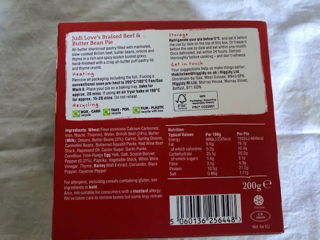 My partner picked me up a Judi Love's Braised Beef & Butter Bean Pie on a rare Sainsbury's trip - and even took some photos for me as I was at work!